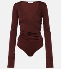 The Nigella bodysuit from Max Mara is a timeless layering piece for a refined wardrobe. Crafted from soft wool, this elegant design features delicate draping, an alluring V-neckline and the brand's signature wrap effect. Product Details - Material: 100% wool - Care instructions: hand wash - Made in China - Designer color name: Ciliegia - Item color: burgundy - Cuff: buttoned - Collar: V-neck - Contains non-textile parts of animal origin - Item number: P01094314 Size & Fit - True to size - Fitted - Stretchy fabric - Medium-cut leg - The model seen in the picture is 178cm-5'10" and wearing a size XS