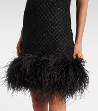 Boasting a rich manufacturing history, Max Mara represents the quintessence of Italian sophistication and expertise. The Novara minidress has a fitted silhouette and dramatically playful feather trims. Product Details - Material: 59% polyester, 19% polyamide, 10% wool, 10% mohair, 2% elastane - Care instructions: hand wash - Made in China - Designer color name: Nero Con - Item color: black - Trim: 100% ostrich feathers - Material II: 95% cotton, 4% cashmere, 1% wool - Insert: 100% polyamide - Contains non-textile parts of animal origin - Item number: P01093468 Size & Fit - True to size - Fitted - Stretchy fabric - The model seen in the picture is 178cm-5'10" and wearing a size XS