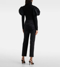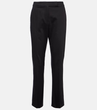 The Okra mid-rise pants from Max Mara are a wardrobe staple. Made from cotton, they feature a subtle flared cut. Product Details - Material: 98% cotton, 2% elastane - Care instructions: machine wash at 30 degrees - Made in Italy - Designer color name: Nero - Closure: zipper fly, button and hook fastenings - Pockets: side slit pockets - Item number: P01024014 Size & Fit - Fits small to size - we recommend trying one size larger - Non-stretchy fabric - Slim-leg with a flared hem - DT = German size - The model seen in the picture is 178cm-5'10" and wearing a size DT 34