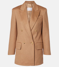 Boasting a rich manufacturing history, Max Mara represents the quintessence of Italian sophistication and expertise. The Olimpia blazer is made from camel hair with a double-breasted silhouette, classic peak lapels, and lightly padded shoulders. Product Details - Material: 100% camel hair - Care instructions: dry clean - Made in Italy - Designer color name: Cammello - Item color: brown - Lining: 65% acetate, 35% polyester - Closure: double-breasted (four buttons) - Peak lapel - Cuff: four buttons - Shoulder pads - Pockets: flap pockets - Vent: double - Item number: P01090643 Size & Fit - True to size - Shoulder pad inserts - Straight fit - Non-stretchy fabric - Falls below the hip - The model seen in the picture is 178cm-5'10" and wearing a size DE 34