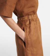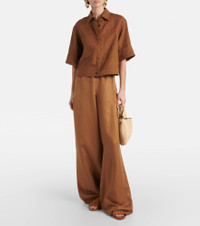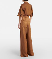 Product Details - Material: 60% linen, 40% silk - Care instructions: dry clean - Made in Italy - Designer color name: Cuoio - Item color: brown - Pockets: side slit pockets - Elasticated waistband - Item number: P01024032 Size & Fit - True to size - Elasticated waist - Non-stretchy fabric - Wide-leg - Unhemmed for tailoring - The model seen in the picture is 178cm-5'10" and wearing a size DT 34