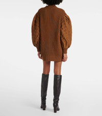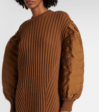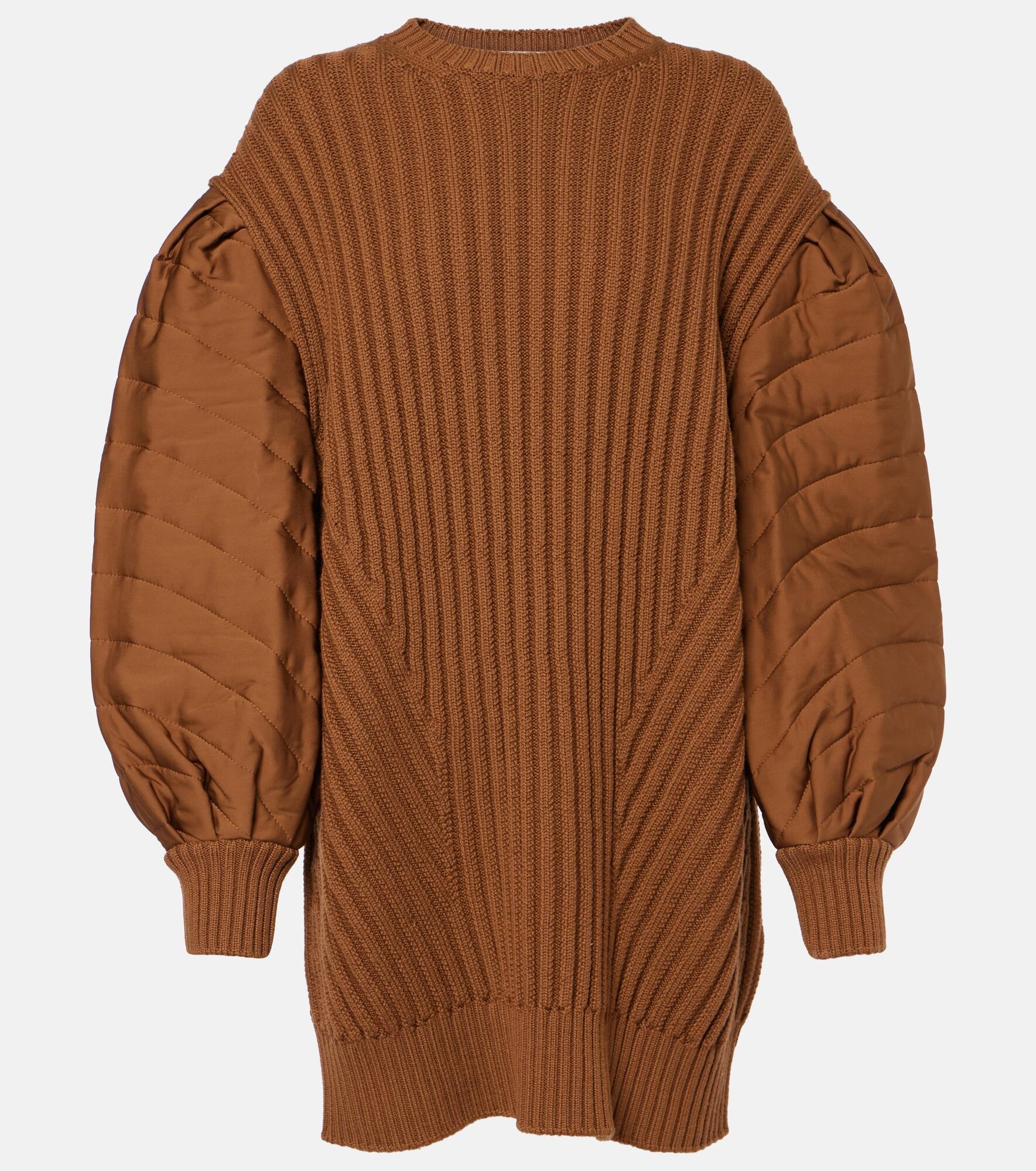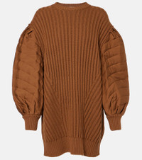 Max Mara exemplifies Italian craftmanship with the Ottuso minidress. Crafted from virgin wool in a flat ribbed pattern, the dress features padded balloon sleeves quilted in silk charmeuse, creating a striking textural contrast. Product Details - Material: 100% virgin wool - Care instructions: dry clean - Made in Italy - Designer color name: Solido Cuoio - Material II: 100% silk - Lining: 95% acetate, 5% elastane - Filling: 48% polyester, 48% camel hair, 4% silk - Item number: P01013000 Size & Fit - True to size - Dropped shoulders - Designed for a loose fit - Partly stretchy fabric - The model seen in the picture is 178cm-5'10" and wearing a size XS