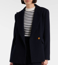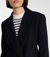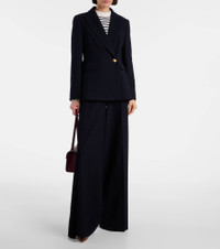 Product Details - Material: 90% wool, 8% polyamide, 2% elastane - Care instructions: dry clean - Made in Italy - Designer color name: Blu Marino - Lining: 65% acetate, 35% polyester - Closure: double-breasted buttoned front - Pockets: flap pockets - Item number: P01012967 Size & Fit - True to size - Cinched waist - Non-stretchy fabric - Falls to the hip - DT = German size - The model seen in the picture is 178cm-5'10" and wearing a size DT 34