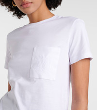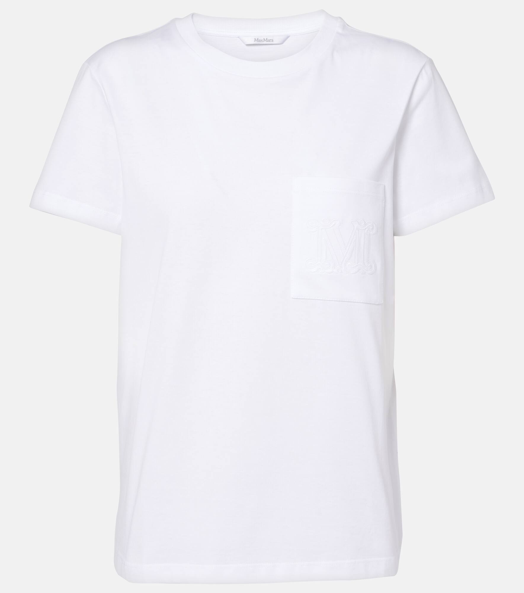 The Papaia T-shirt from Max Mara blends comfort and style. Made from cotton, it features a ribbed neckline and a tonal patch pocket with an embroidered M monogram detail. Product Details - Material: 100% cotton - Care instructions: machine wash at 30 degrees - Made in Tunisia - Designer color name: BIanco Ottico - Item number: P01024101 Size & Fit - True to size - Straight fit - Slightly stretchy fabric - Falls to the hip - The model seen in the picture is 178cm-5'10" and wearing a size XS