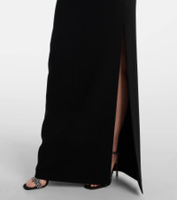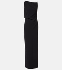 Boasting a rich manufacturing history, Max Mara represents the quintessence of Italian sophistication and expertise. The Pentola maxi dress is asymmetrically slanted across the neckline and back and features a thigh-high slit on one side. Product Details - Material: 70% triacetate, 30% polyester - Care instructions: dry clean - Made in Italy - Designer color name: Nero - Item color: black - Material II: 100% silk - Hardware color: silver - Closure: concealed zipper, zipped side - Long vent - Item number: P01096040 Size & Fit - True to size - Low back - Cinched waist - Slightly stretchy fabric - slit length 71cm-28" - The model seen in the picture is 178cm-5'10" and wearing a size DE 34