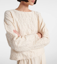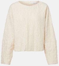 Boasting a rich manufacturing history, Max Mara represents the quintessence of Italian sophistication and expertise. Made from soft cotton-blend jersey with a crinkle effect, the Pepaia long-sleeved top is complete with a zipper fastening at the back. Product Details - Material: 80% cotton, 18% polyamide, 2% elastane - Care instructions: machine wash at 30 degrees - Made in Romania - Designer color name: Tela - Item color: ivory - Closure: partially zipped - Item number: P01077513 Size & Fit - True to size - Straight fit - Non-stretchy fabric - Slightly cropped - The model seen in the picture is 178cm-5'10" and wearing a size XS