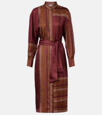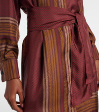 Max Mara's Pietre wrap dress is tailored to a midi silhouette and designed with a self-tie belt that elegantly defines the waist. Crafted in Italy from pure silk, the style is finished with a colorful print. Product Details - Material: 100% silk - Care instructions: dry clean - Made in Italy - Designer color name: Cammello - Item color: burgundy - Contains non-textile parts of animal origin - Collar: band - Closure: concealed buttoned front - Cuff: buttoned - Self-tie belt - Side slits - Item number: P01090672 Size & Fit - Fits large to size - we recommend trying one size smaller - Designed for a loose fit - Non-stretchy fabric - The model seen in the picture is 178cm-5'10" and wearing a size DE 32