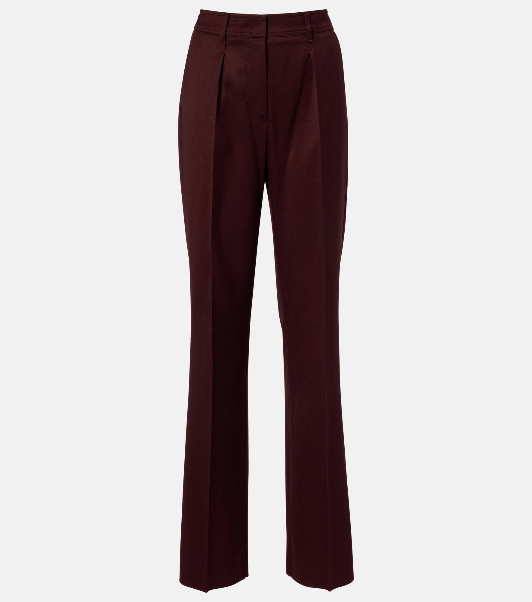 Boasting a rich manufacturing history, Max Mara represents the quintessence of Italian sophistication. These virgin wool pants are tailored to a high-rise, straight silhouette and finished with a pleated front and a back leather logo patch. Product Details - Material: 100% virgin wool - Care instructions: dry clean - Made in Italy - Designer color name: Ciliegia - Item color: burgundy - Contains non-textile parts of animal origin - Belt loops - Pockets: slant pockets, back pockets - Closure: zipper fly, button and hook fastenings - Item number: P01090661 Size & Fit - True to size - Non-stretchy fabric - Straight leg - Unhemmed for tailoring - The model seen in the picture is 178cm-5'10" and wearing a size DE 34