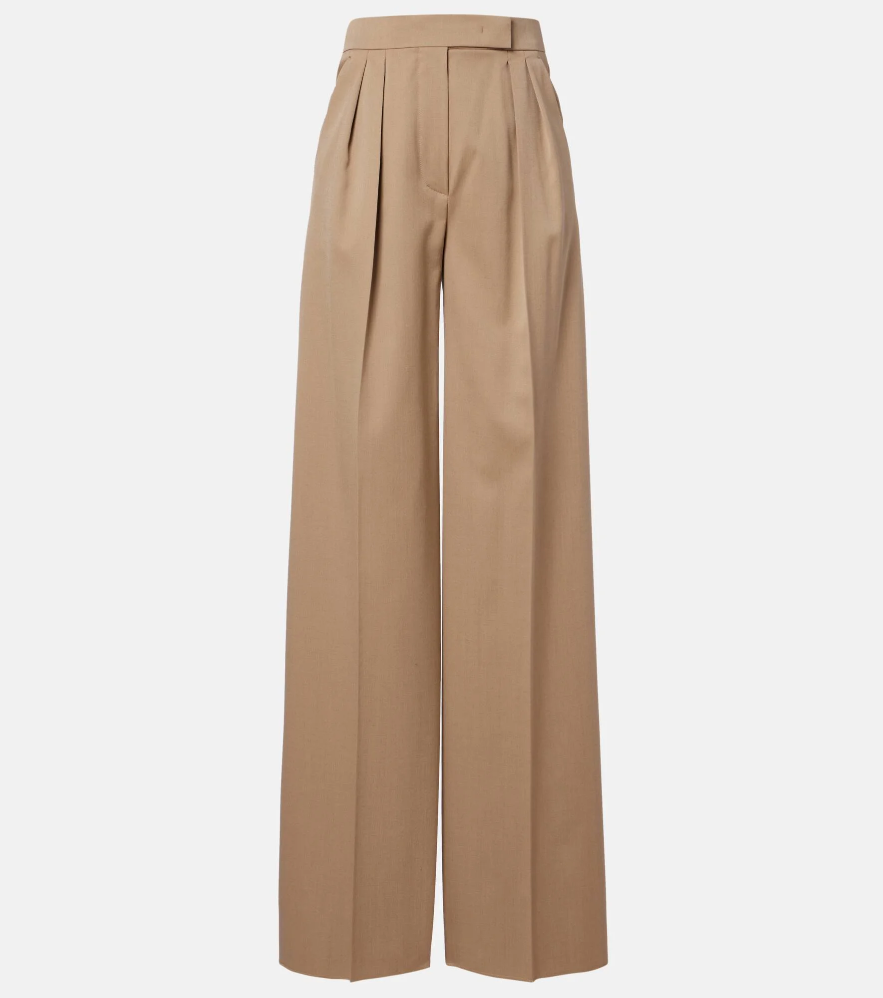 Boasting a rich manufacturing history, Max Mara represents the quintessence of Italian sophistication and expertise. These Quorum pants are tailored from virgin wool to a wide-leg silhouette, complemented by pleated detailing on the front. Product Details - Material: 100% virgin wool - Care instructions: dry clean - Made in Italy - Color: beige - Designer color name: Tabacco Chiaro - Closure: zip, hook, and button fastening - Pockets: slant pockets, back pockets - Hem: unfinished (ready for alteration) - Item number: P01120710 Size & Fit - True to size - Non-stretchy fabric - Wide-leg - High-waisted - Unhemmed for tailoring - The model seen in the picture is 178cm-5'10" and wearing a size DE 34