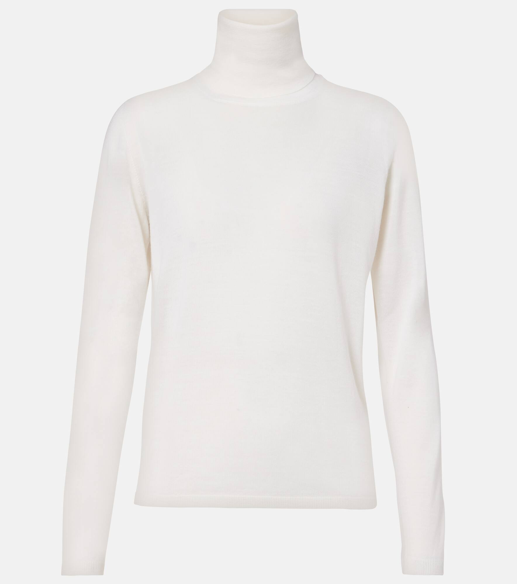 Boasting a rich manufacturing history, Max Mara represents the quintessence of Italian sophistication and expertise. Coming in white virgin wool, the Saluto turtleneck sweater is ideal for both elegant and laid-back ensembles. Product Details - Material: 100% virgin wool - Care instructions: hand wash - Made in Italy - Designer color name: Bianco - Item color: white - Collar: turtleneck - Cuff: ribbed - Hem: ribbed - Item number: P01090693 Size & Fit - True to size - Cinched waist - Stretchy fabric - Slightly cropped - The model seen in the picture is 178cm-5'10" and wearing a size XS