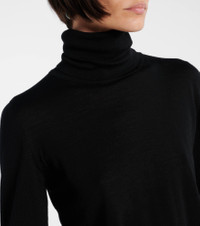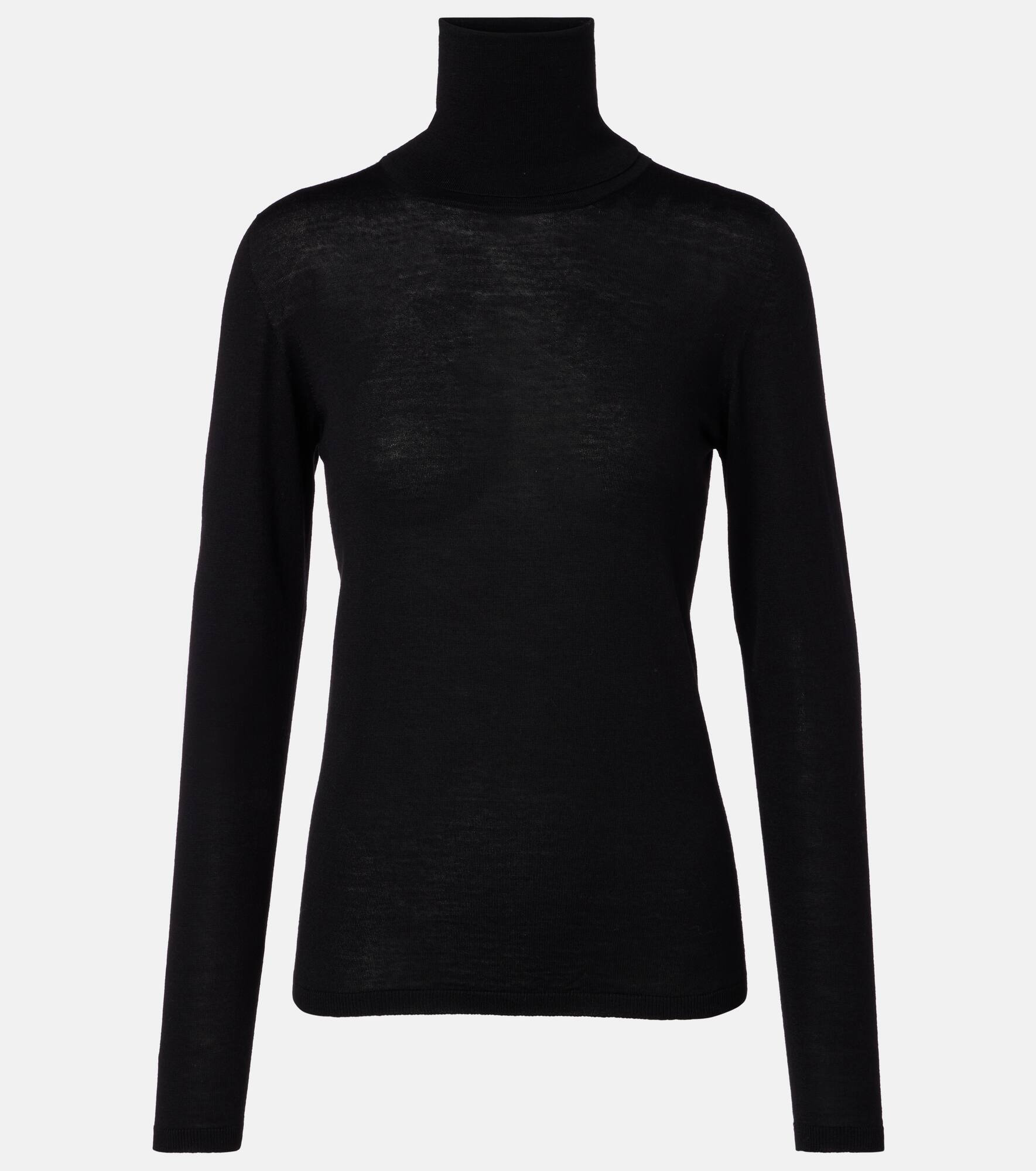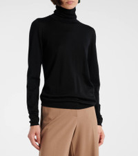 Boasting a rich manufacturing history, Max Mara represents the quintessence of Italian sophistication and expertise. The Saluto turtleneck sweater is crafted from ultra-soft wool and features a a defined waist. Product Details - Material: 100% virgin wool - Care instructions: hand wash - Made in Italy - Designer color name: Nero - Item color: black - Collar: turtleneck - Cuff: ribbed - Hem: ribbed - Item number: P01090695 Size & Fit - True to size - Cinched waist - Stretchy fabric - Slightly cropped - The model seen in the picture is 178cm-5'10" and wearing a size XS