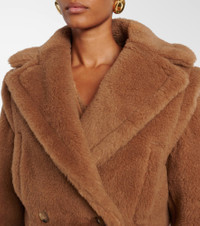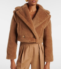 Boasting a rich manufacturing history, Max Mara represents the quintessence of Italian sophistication and expertise. The Santos jacket is cut from camel hair and silk to a cropped silhouette and features an asymmetric front fastening. Product Details - Material: 88% camel hair, 12% silk - Care instructions: dry clean - Made in Italy - Designer color name: Cammello - Item color: brown - Lining: 100% viscose - Contains non-textile parts of animal origin - Material II: 100% polyamide - Filling: 48% polyester, 48% camel hair, 4% silk - Material III: 88% camel hair, 12% silk - Lining II: 100% viscose - Notched lapel - Closure: double-breasted, snap-buttoned fastenings - Pockets: welt pockets - Item number: P01090642 Size & Fit - True to size - Straight fit - Non-stretchy fabric - Cropped - The model seen in the picture is 178cm-5'10" and wearing a size DE 34