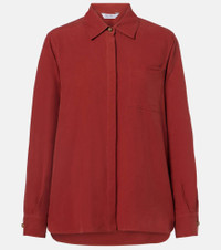 This shirt reflects Max Mara's attention to detail and Italian sophistication. A timeless addition to any wardrobe, this shirt is crafted from soft silk and features a patch pocket and a classic buttoned placket. Product Details - Material: 100% silk - Care instructions: dry clean - Made in Italy - Color: brown - Designer color name: Terracotta - Hardware color: gold - Collar: classic (Straight point) - Cuff: French round - Pockets: patch - Closure: buttoned placket - Item number: P01120703 Size & Fit - True to size - Straight fit - Non-stretchy fabric - Falls below the hip - The model seen in the picture is 178cm-5'10" and wearing a size DE 34