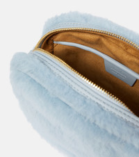 Made from a luxuriously soft blend of alpaca, wool, and silk, Max Mara’s lovable teddy fabric makes the perfect gift (or treat for yourself). From the oh-so-cozy exclusive capsule, the Small camera bag is a blue-hued compact companion with golden hardware. Product Details - Material: fabric - Lining: fabric - Made in Italy - Designer color name: Light Blue - Trim: leather - Closure: zipped top - Internal details: internal slot pocket - Adjustable shoulder strap - Color of strap: gold - Comes with dust bag - Item number: P00860958 Size & Fit - Height 14cm-5.5" - Width 19cm-7.5" - Depth 6cm-2.5" - Min. length shoulder strap 117cm-46" - Max. length shoulder strap 123cm-48.5" - Suitable for large smartphones (e.g. iPhone 12 Pro Max / Samsung Galaxy A72, S21 Ultra/ Huawei P40 Pro, Mate 40 pro)
