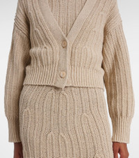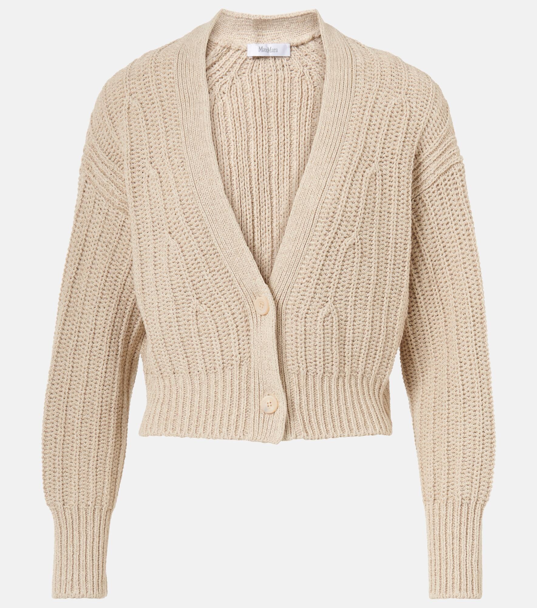 Boasting a rich manufacturing history, Max Mara represents the quintessence of Italian sophistication and expertise. The Stelvio cardigan is made from linen and cotton to a relaxed silhouette with dropped sleeves and a textured finish. Product Details - Material: 55% linen, 45% cotton - Care instructions: hand wash - Made in North Macedonia - Designer color name: Corda - Item color: beige - Contains non-textile parts of animal origin - Closure: buttoned front - Item number: P01024077 Size & Fit - True to size - Dropped shoulders - Designed for a loose fit - Non-stretchy fabric - Cropped - The model seen in the picture is 178cm-5'10" and wearing a size XS