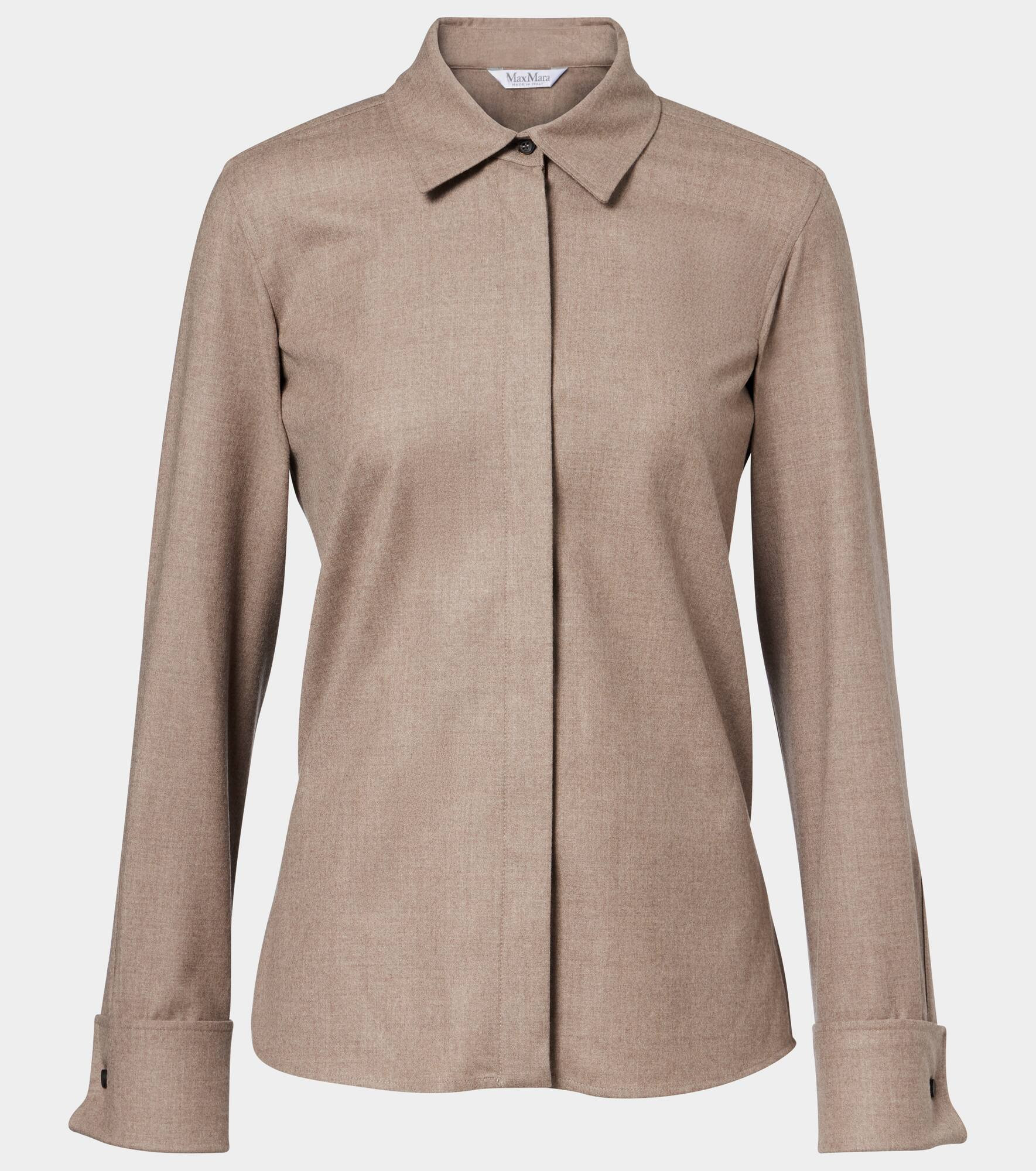 Boasting a rich manufacturing history, Max Mara represents the quintessence of Italian sophistication and expertise. The Tebaide shirt is made from a mostly cashmere blend. Product Details - Material: 96% cashmere, 4% elastane - Care instructions: dry clean - Made in Italy - Designer color name: Cacha Scuro - Item color: brown - Closure: concealed buttoned front - Collar: classic (Straight point) - Item number: P01090295 Size & Fit - True to size - Straight fit - Non-stretchy fabric - Falls below the hip - slit length 13cm-5" - The model seen in the picture is 178cm-5'10" and wearing a size DE 34