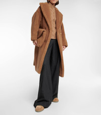 Max Mara updates a timeless silhouette with high-impact texture, rendering this brown double-breasted coat in a plush camel hair and silk teddy. The tactile twist feels fashion-forward yet perfectly refined, its playful quality tempered by this design's tailoring and menswear-inspired mood. Let yours bring touchable cool factor to crisp shirts with slim ankle pants and brogues. Product Details - Material: 12% silk, 88% camel hair - Lining: fully lined, 100% viscose - Made in Italy - Designer color name: Cammello - Pockets: side slit pockets - Care instructions: dry clean - Closure: button fastening - Item number: P00335234 Size & Fit - True to size - Designed for an extremely oversized fit - Dropped shoulders - Thick material - Non-stretchy fabric - The model seen in the picture is 178cm-5'10" and wearing a size XS
