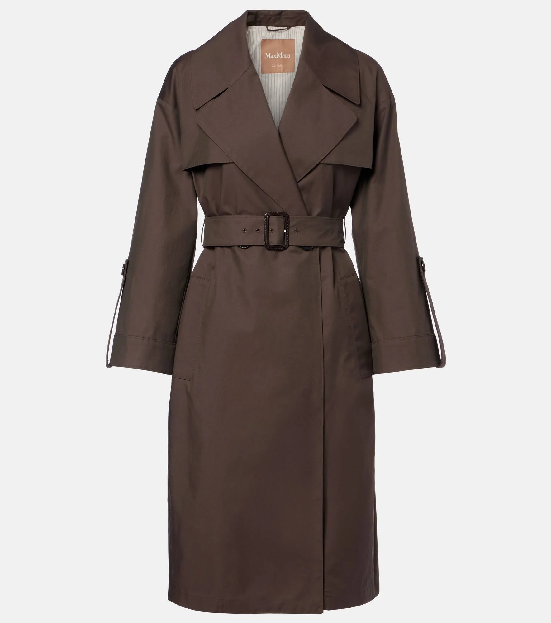 Since its inception in 2008, the Cube line from Max Mara has amassed a cult following of its innovative outerwear. Part of the collection, this Amour trench coat is crafted from a water-repellent cotton-blend twill and paired with a matching belt. Product Details - Material: 69% cotton, 31% polyester - Care instructions: machine wash at 30 degrees - Made in Romania - Color: brown - Designer color name: Chocolate - Lining: 100% polyester - Contains non-textile parts of animal origin - Closure: double-breasted - Detachable belt - Pockets: welt pockets - Item number: P01124651 Size & Fit - True to size - Loose fit, comes with belt - Non-stretchy fabric - The model seen in the picture is 178cm-5'10" and wearing a size DE 34
