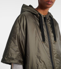 The Greenci cape is part of Max Mara's iconic The Cube line. Made from water-repellent technical canvas and padded with insulating Cameluxe, the design features a hood and drawstrings at the hem. Product Details - Material: 100% polyester - Care instructions: dry clean - Made in Armenia - Designer color name: Kakhi - Item color: green - Lining: 100% polyester - Insert: 48% polyester, 48% camel hair, 4% silk - Closure: two-way zipped front - Pockets: side slit pockets - Sleeves: short-sleeved - Hem: elasticated - Drawstring hood - Contains non-textile parts of animal origin - Item number: P01076829 Size & Fit - True to size - Designed for a loose fit - Adjustable hem - Non-stretchy fabric - Falls below the hip - The model seen in the picture is 178cm-5'10" and wearing a size S