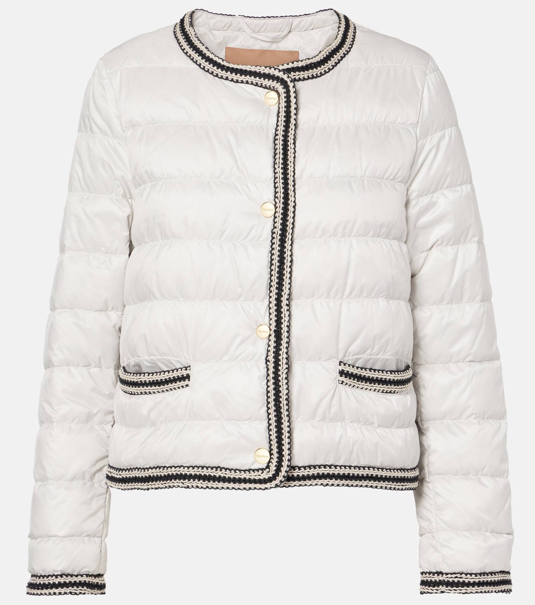 Product Details - Material: 100% polyester - Care instructions: machine wash at 30 degrees - Made in Romania - Designer color name: Pearl - Lining: 100% polyester - Closure: snap-buttoned fastenings - Filling: 90% down, 10% feathers - Pockets: slit pockets - Item number: P01009209 Size & Fit - Fits small to size - we recommend trying one size larger - Straight fit - Non-stretchy fabric - Slightly cropped - DT = German size - The model seen in the picture is 178cm-5'10" and wearing a size DT 36