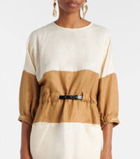 Product Details - Material: 60% linen, 40% silk - Care instructions: dry clean - Made in Romania - Designer color name: Avorio/ Caramel - Item color: beige - Closure: zipped front - Item number: P01024059 Size & Fit - True to size - Designed for a loose fit - Adjustable at the waist - Non-stretchy fabric - The model seen in the picture is 178cm-5'10" and wearing a size DE 34