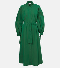 Boasting a rich manufacturing history, Max Mara represents the quintessence of Italian sophistication and expertise. Made from lightweight cotton, the Viale shirt dress is complete with a pointed collar, elasticated cuffs, and a detachable belt that can accentuate the waist. Product Details - Material: 100% cotton - Care instructions: dry clean - Made in Italy - Designer color name: Smeraldo - Item color: green - Closure: buttoned front - Collar: classic (Straight point) - Sleeves: long-sleeved - Cuff: elasticated - Detachable belt - Hem: plain - Item number: P01079563 Size & Fit - True to size - Loose fit, comes with belt - Non-stretchy fabric - The model seen in the picture is 178cm-5'10" and wearing a size DE 34