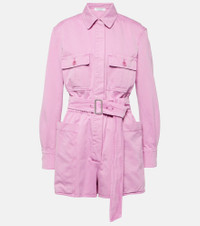 Product Details - Material: 100% cotton - Cuff: buttoned - Detachable belt - Care instructions: machine wash at 30 degrees - Made in Italy - Designer color name: Peonia - Collar: classic (Straight point) - Closure: concealed buttoned front - Pockets: flap pockets, patch pockets, buttoned pockets, back pocket - Item number: P00923511 Size & Fit - True to size - Dropped shoulders - Loose fit, elasticated waist - Non-stretchy fabric - Straight leg - High-waisted - DT = German size - The model seen in the picture is 178cm-5'10" and wearing a size DT 34