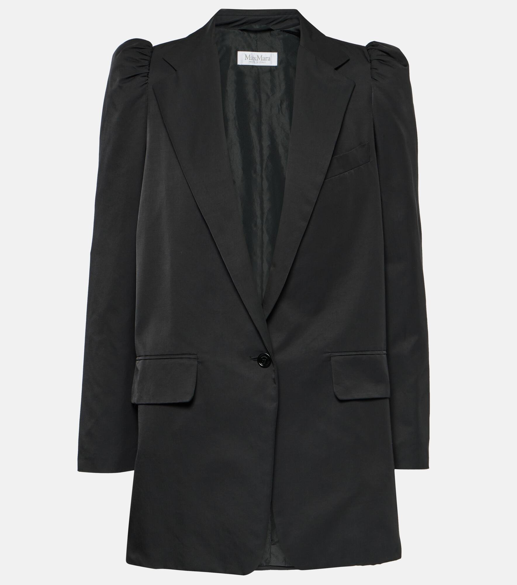 Product Details - Material: 61% cotton, 39% polyamide - Cuff: four buttons - Care instructions: do not wash - Made in Italy - Designer color name: Nero - Pockets: faux pockets, flap pockets, breast pocket - Closure: button fastening - Lining: 100% polyester - Item number: P00899734 Size & Fit - True to size - Shoulder pad inserts - Straight fit - Non-stretchy fabric - Falls below the hip - DT = German size - The model seen in the picture is 178cm-5'10" and wearing a size DT 34