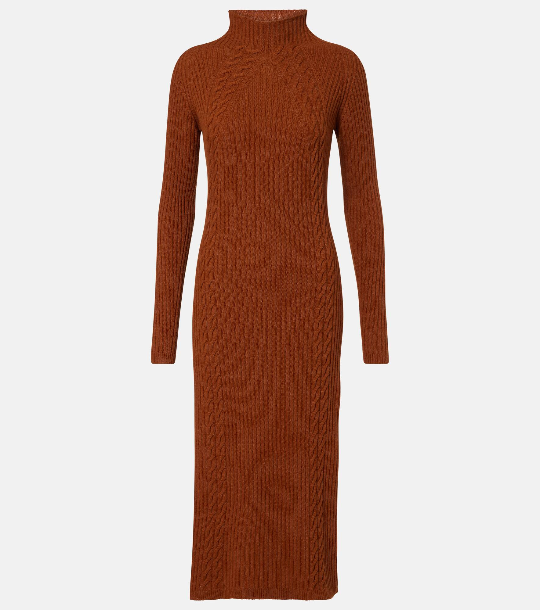 Boasting a rich manufacturing history, Max Mara represents the quintessence of Italian sophistication and expertise. The Zelanda high-neck midi dress is made from a ribbed-knit wool blend. Product Details - Material: 66% wool, 28% cashmere, 5% polyamide, 1% elastane - Care instructions: hand wash - Made in Romania - Designer color name: Cognac - Item color: black - Item number: P01090681 Size & Fit - True to size - Fitted - Stretchy fabric - The model seen in the picture is 178cm-5'10" and wearing a size XS
