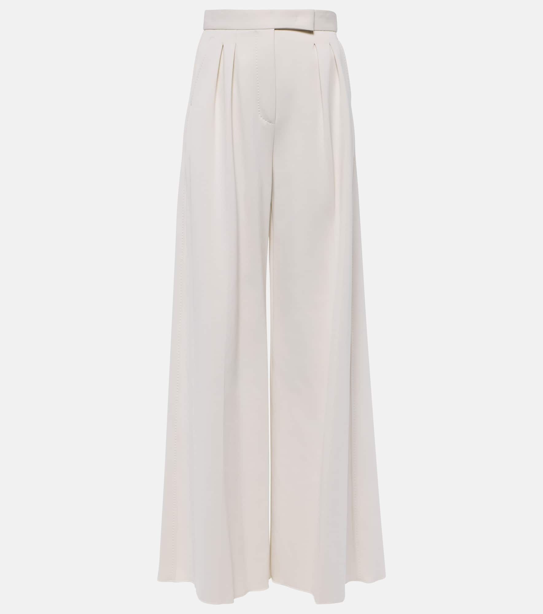 Product Details - Material: 60% polyamide, 40% cotton - Care instructions: dry clean - Made in Italy - Designer color name: Tela - Closure: zipper fly, button and hook fastenings - Pockets: side slit pockets, back pockets - Item number: P00899720 Size & Fit - True to size - Non-stretchy fabric - Wide-leg - High-waisted - Unhemmed for tailoring - DT = German size - The model seen in the picture is 178cm-5'10" and wearing a size DT 34