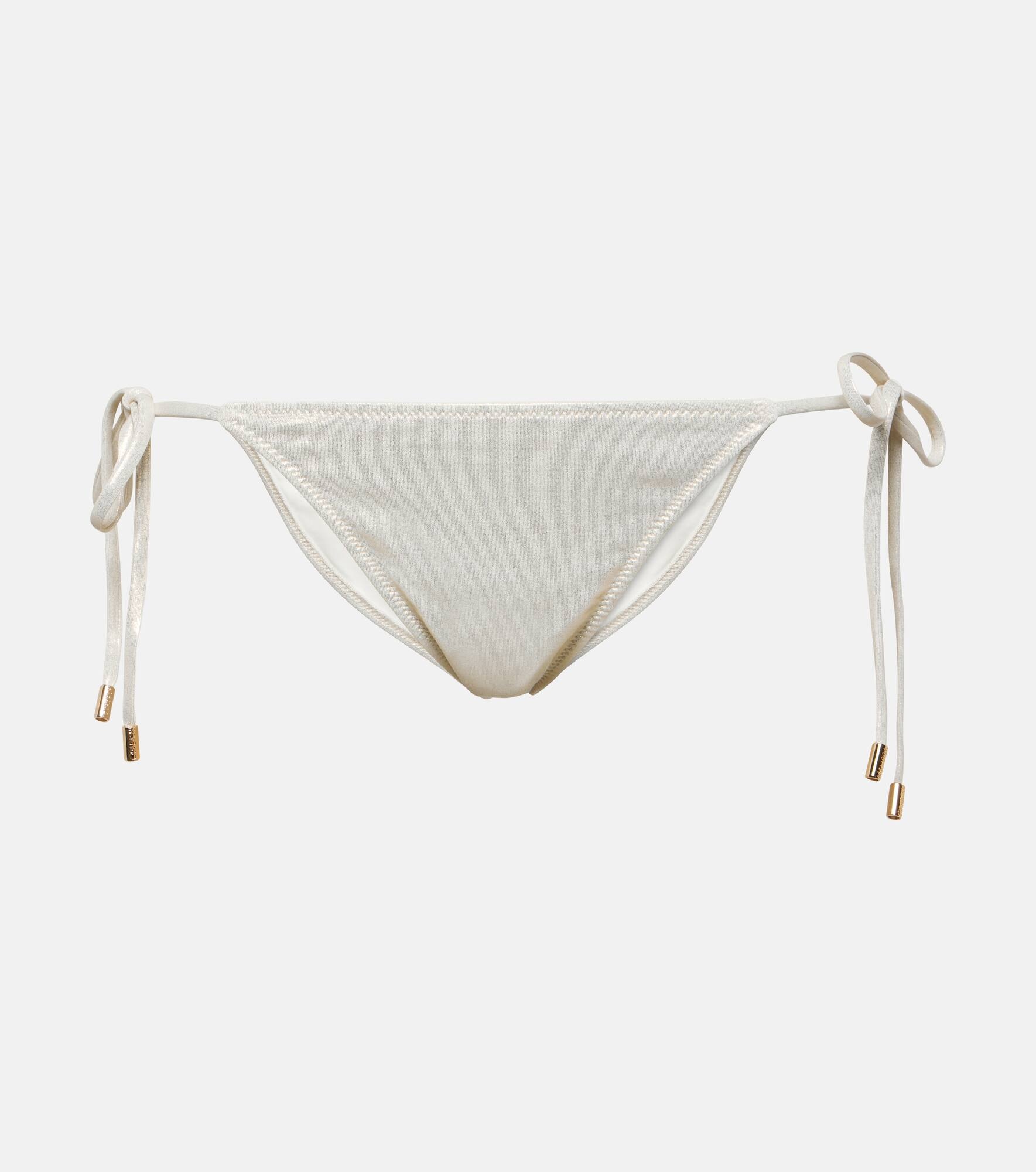 Product Details - Material: 86% polyamide, 14% elastane - Made in Italy - Designer color name: Gold - Care instructions: hand wash - Closure: self-ties - Item number: P00929393 Size & Fit - True to size - Minimal coverage - High-cut leg - The model seen in the picture is 178cm-5'10" and wearing a size IT 40