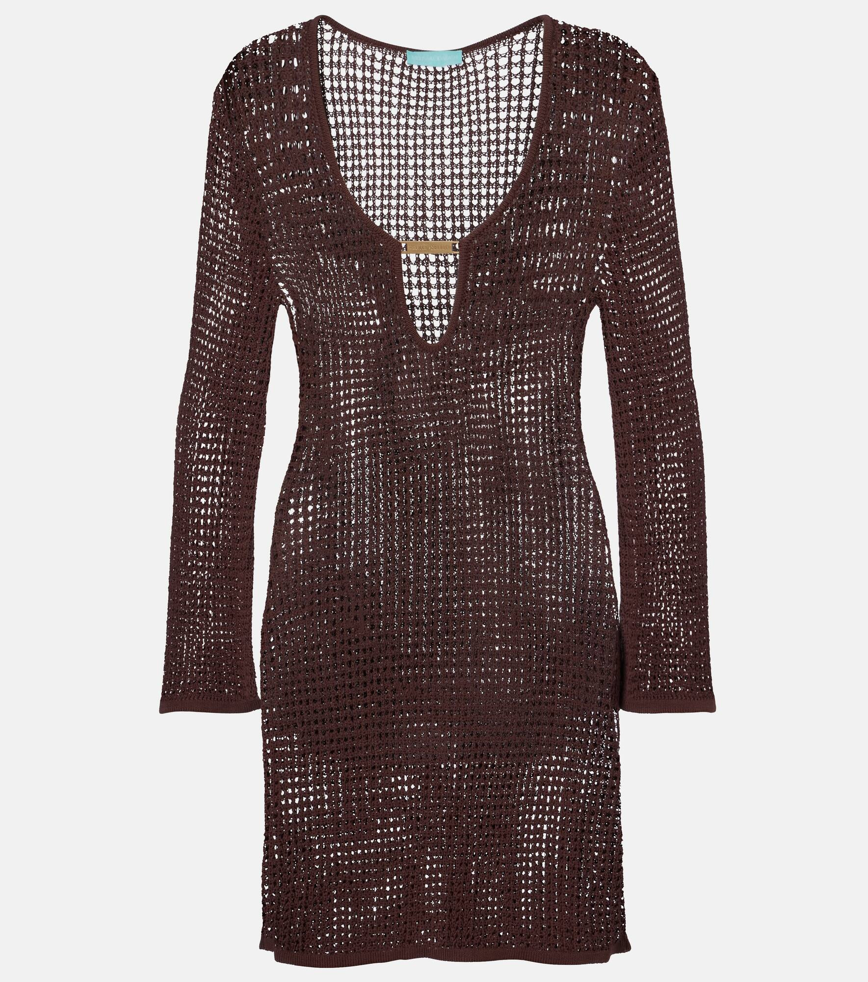 After working as a swimwear model, Melissa Odabash used her experience to create designs that are equal parts stylish and comfortable. The Ellis minidress features delicate scalloped trims and a front logo plaque that forms a keyhole cutout. Product Details - Material: 65% viscose, 35% nylon - Care instructions: hand wash cold - Made in China - Designer color name: Brown Ribbed - Item color: brown - Hardware color: gold - Hem: scalloped - Item number: P01125415 Size & Fit - True to size - Sheer - Fitted - Stretchy fabric - The model seen in the picture is 178cm-5'10" and wearing a size XS