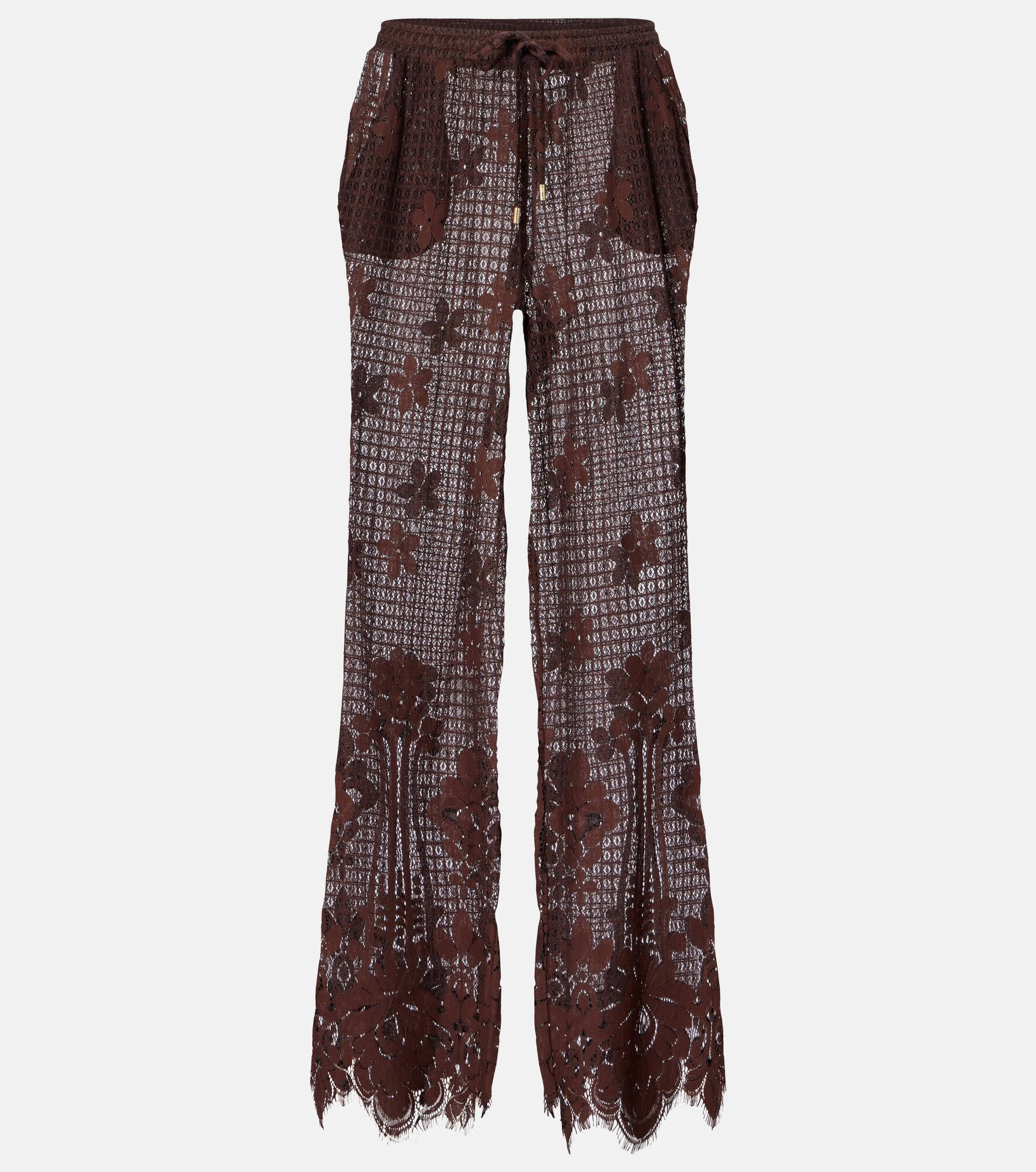 Etta cotton-blend lace wide-leg pants