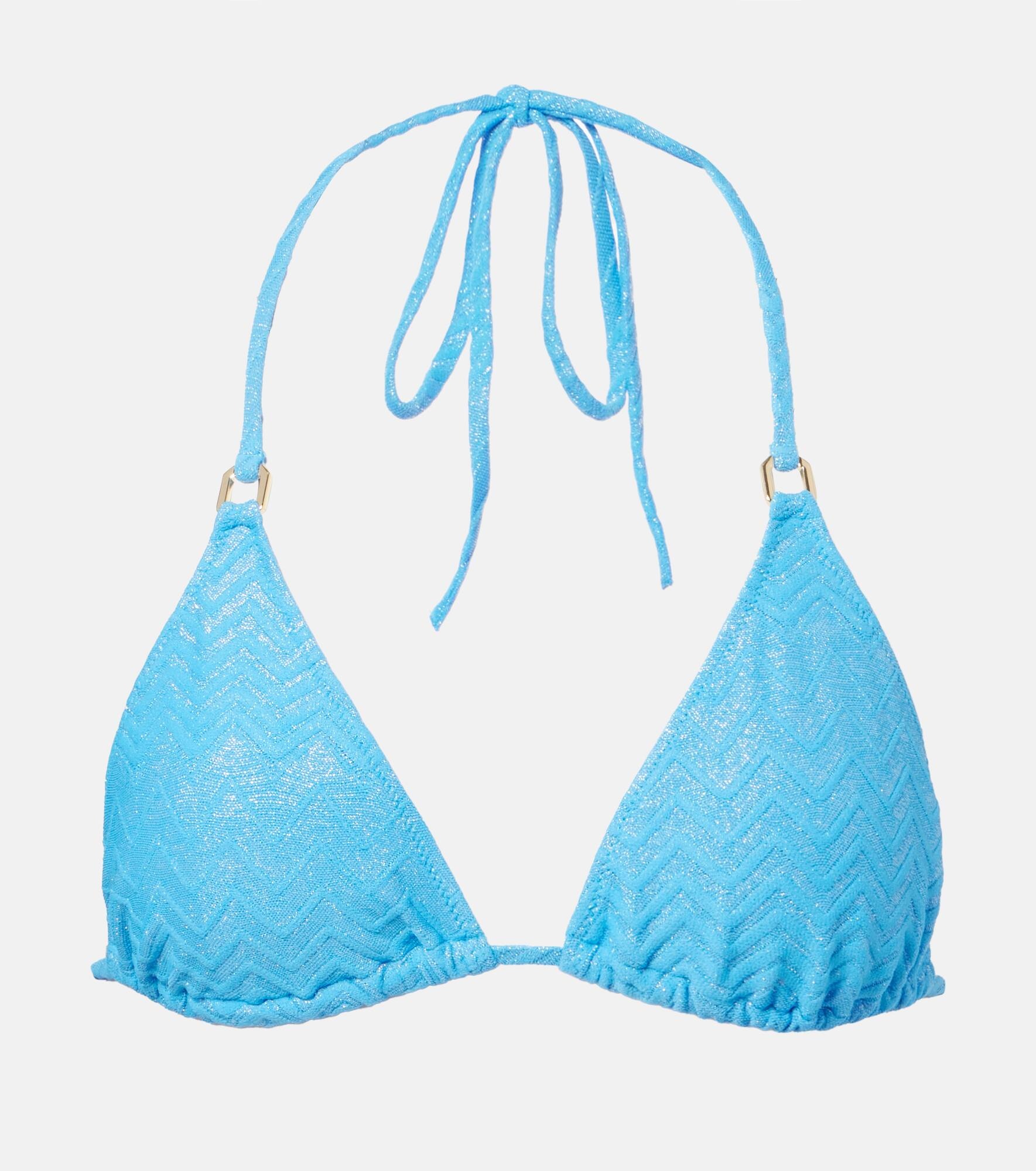 After working as a swimwear model, Melissa Odabash used her experience to create designs that are equal parts stylish and comfortable. The Maine bikini top is shaped into a classic triangle silhouette with striking, raised chevron detailing. Product Details - Material: 68% polyamide, 16% metallic fibres, 16% elastane - Care instructions: hand wash - Made in Italy - Designer color name: Zigzag Ocean - Item color: blue - Item number: P01053077 Size & Fit - True to size - Unpadded Top - The model seen in the picture is 178cm-5'10", cup size B, and wearing a size IT 40