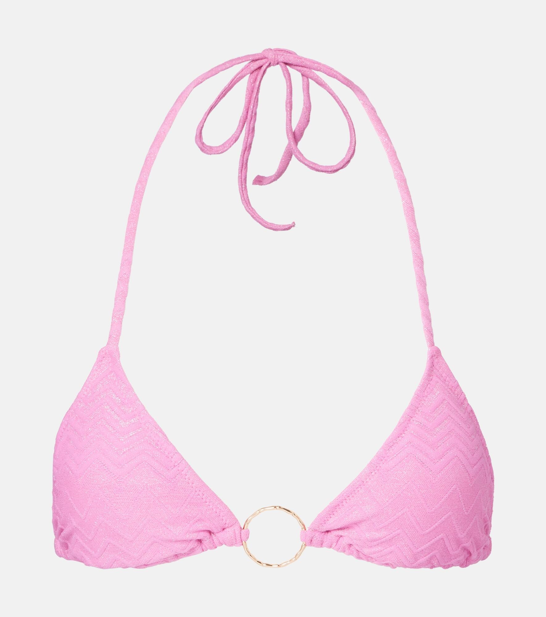 After working as a swimwear model, Melissa Odabash used her experience to create designs that are equal parts stylish and comfortable. Featuring striking chevron detailing, the Miami bikini top has classic self-ties and golden ring hardware. Product Details - Material: 68% polyamide, 16% elastane, 16% metallic fibres - Care instructions: hand wash - Made in Italy - Designer color name: Zigzag Pink - Item color: pink - Item number: P01053087 Size & Fit - True to size - Removable padding - The model seen in the picture is 178cm-5'10", cup size B, and wearing a size IT 40
