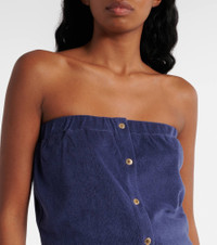 Product Details - Material: 80% cotton, 20% polyester - Care instructions: hand wash - Made in China - Designer color name: Navy - Closure: snap-buttoned front - Pockets: side slit pockets - Drawstring waist - Item number: P01000388 Size & Fit - True to size - Strapless - Loose fit, drawstring waist - Non-stretchy fabric - Straight leg - The model seen in the picture is 178cm-5'10" and wearing a size XS