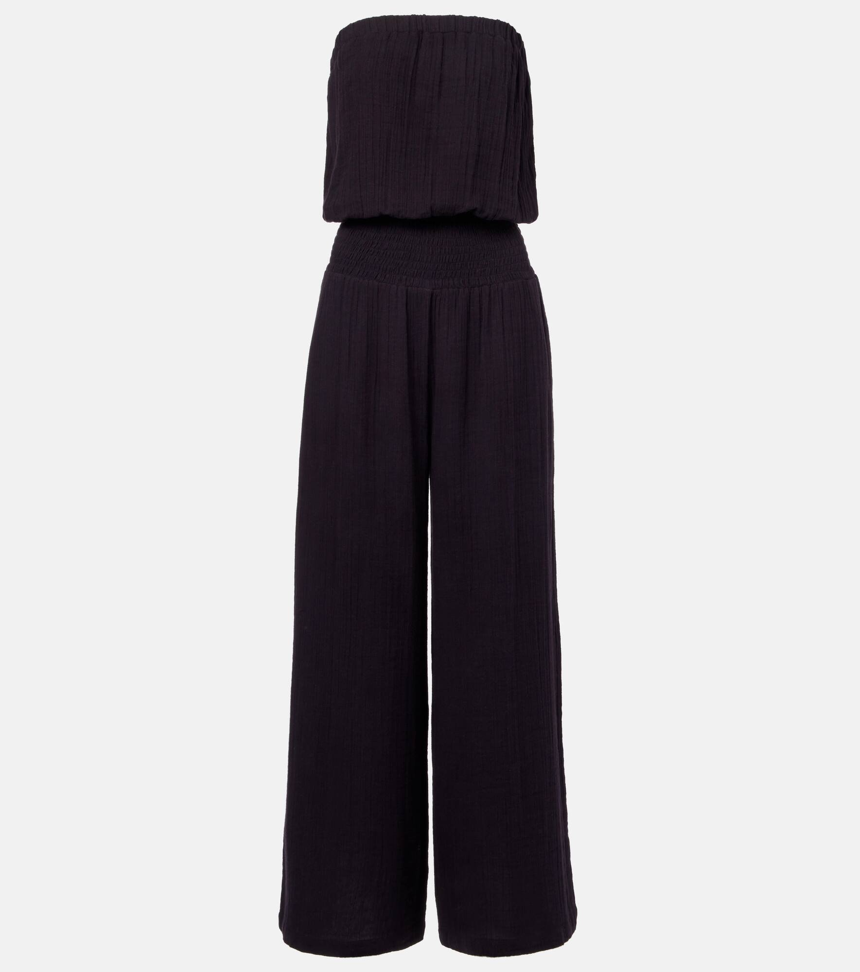 Choose Melissa Odabash's Naomi jumpsuit for unmatched ease. Perfect for warmer temperatures, the design is made from lightweight cotton with a strapless bodice, a shirred waistband, and relaxed, wide legs. Product Details - Material: 100% cotton - Care instructions: hand wash - Made in India - Designer color name: Black - Item color: black - Item number: P01041611 Size & Fit - True to size - Strapless - Loose fit, elasticated waist - Non-stretchy fabric - Wide-leg - The model seen in the picture is 178cm-5'10" and wearing a size XS