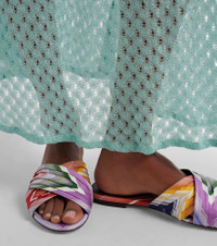 Made from durable twill with a slight sheen, the Ada slides from Missoni will bring color to your everyday rotation. The vibrant pair features pleated straps and a brand-signature Chevron pattern. Product Details - Upper: fabric - Lining: leather - Sole: fabric insole, leather sole - Color: multicoloured - Toe shape: round open toe - Made in Italy - Includes: shoe box - Designer color name: Multicolor - Item number: P01149173 Size & Fit - True to size - For narrow feet, we recommend trying a half size smaller - European sizes