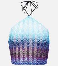Poolside glamour is at its finest with this top from Missoni. The design is crafted in Italy with a slight metallic finish and boasts a cropped silhouette. Product Details - Material: 88% viscose, 12% metallic fibres - Care instructions: dry clean - Made in Italy - Designer color name: Multi Blue - Item color: blue, purple - Trim: 100% polyester - Item number: P01035119 Size & Fit - True to size - Semi-sheer - Straight fit - Elasticated hem - Slightly stretchy fabric - Cropped - The model seen in the picture is 178cm-5'10" and wearing a size IT 42