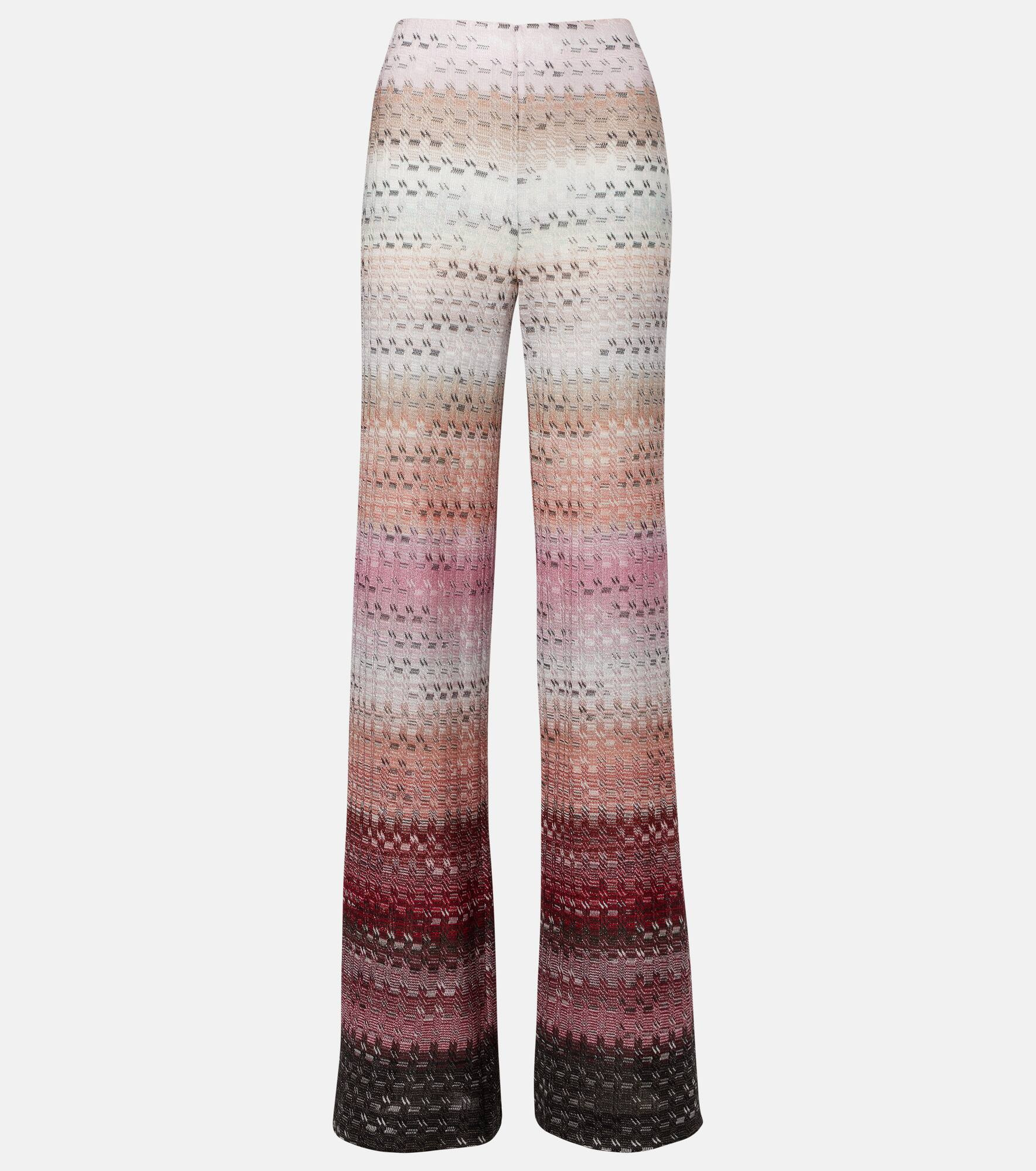 Elegant yet effortless, these pants from Missoni are primed to become your new favorite. Made from lame, this flared pair comes in a high-rise silhouette and is enriched with a gradient pattern. Product Details - Material: 88% viscose, 12% metallic fibres - Care instructions: dry clean - Made in Italy - Designer color name: Pink Tones - Item color: pink, multicolor - Lining: 77% polyamide, 23% elastane - Elasticated waistband - Item number: P01074713 Size & Fit - True to size - Elasticated waist - Stretchy fabric - Wide-leg - High-waisted - The model seen in the picture is 178cm-5'10" and wearing a size IT 38