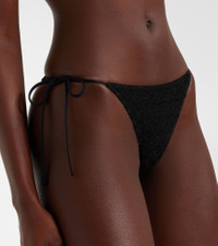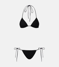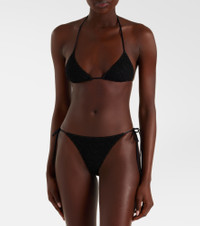 Invest in statement swimwear like this sparkling Missoni bikini. The classic triangle silhouette is crafted from a fine open-knit lame and features self-ties for a tailored fit. Product Details - Material: 83% viscose, 17% metallic fibres - Care instructions: hand wash - Made in Italy - Designer color name: Black - Item color: black - Lining: 90% polyamide, 10% elastane - Two-piece set - Closure: self-ties - Item number: P01107521 Size & Fit - True to size - Unpadded Top - Medium-cut leg - The model seen in the picture is 178cm-5'10", cup size B, and wearing a size IT 40