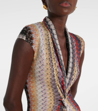 A style with a bold and sophisticated character, this Missoni maxi dress is crafted from the brand's signature lame threads. Its vibrant pattern combined with the sheen of the fabric emphasize the texture of the design. Product Details - Material: 91% viscose, 9% metallic fibres - Care instructions: dry clean - Made in Italy - Designer color name: Blue And Red Tones - Item color: multicolor - Collar: V-neck - Detachable lining - Item number: P01045638 Size & Fit - True to size - Cinched waist - Stretchy fabric - The model seen in the picture is 178cm-5'10" and wearing a size IT 38