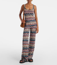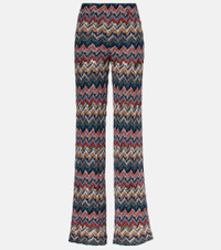 Missoni offers their signature twist on classic palazzo pants. This pair has open-knit construction and features a multicolored pattern that is reminiscent of the brand's signature Zig Zag motif. Product Details - Material: 66% viscose, 30% wool, 4% metallic fibres - Care instructions: dry clean - Made in Italy - Designer color name: Multicolor tones - Item color: multicolor - Lining: 77% polyamide, 23% elastane - Elasticated waistband - Fully lined - Item number: P01045617 Size & Fit - True to size - Stretchy fabric - Wide-leg - High-waisted - The model seen in the picture is 178cm-5'10" and wearing a size IT 38