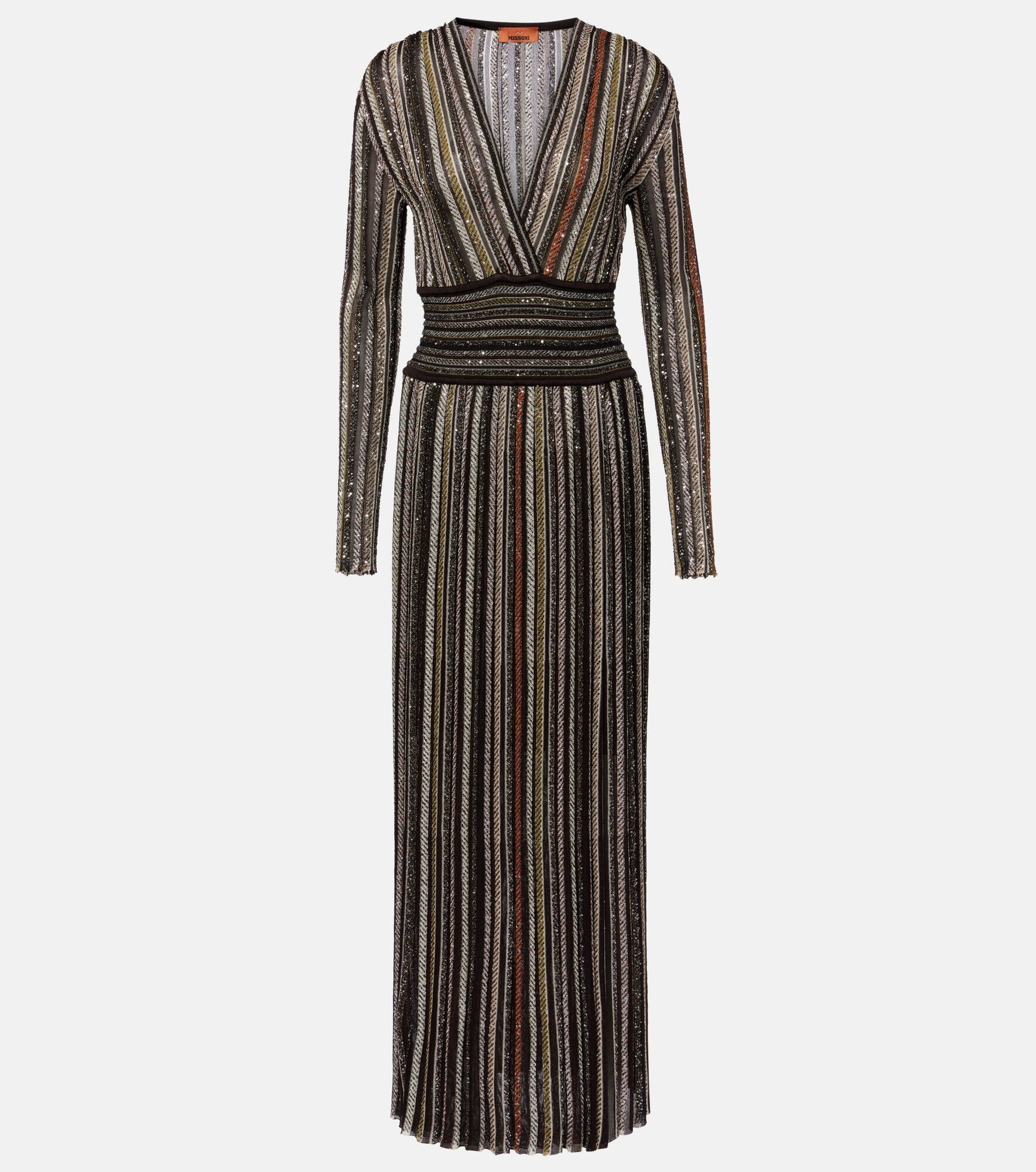 Special occasions are glamorous in this gown from Missoni. The design boasts multicolored stripes of dazzling sequins and a fitted band around the waist. Product Details - Material: 66% viscose, 29% polyamide, 4% metallic fibres, 1% elastane - Care instructions: dry clean - Made in Italy - Designer color name: Multicolor beige and brown - Item color: multicolor - Lining: 88% polyester, 12% elastane - Closure: invisible zipper - Partially lined - Item number: P01045567 Size & Fit - True to size - Cinched waist - Elasticated waist - Stretchy fabric - The model seen in the picture is 178cm-5'10" and wearing a size IT 38