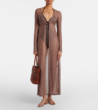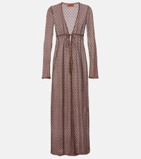 Missoni’s craftsmanship, iconic patterns, and bold color palettes bring a sense of sophisticated joy to dressing. Crafted from semi-sheer lame, this beach cover-up is an open-knit piece with a self-tie cinched waistline. Product Details - Material: 87% viscose, 13% metallic fibres - Care instructions: dry clean - Made in Italy - Color: brown - Designer color name: Brown - Self-tie belt - Item number: P01107467 Size & Fit - True to size - Sheer - Loose fit, comes with belt - Stretchy fabric - Falls below the hip - The model seen in the picture is 178cm-5'10" and wearing a size IT 38