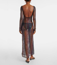 Crafted in Italy, this maxi dress from Missoni showcases a sheer, open-back style. This design is embellished with sequins and is cut to a fitted silhouette. Product Details - Material: 61% viscose, 23% metallic fibres, 16% polyamide - Care instructions: dry clean - Made in Italy - Designer color name: Multicolor w/Black Base - Item color: multicolor - Item number: P01035075 Size & Fit - True to size - Low back - Sheer - Fitted - Slightly stretchy fabric - The model seen in the picture is 178cm-5'10" and wearing a size IT 38