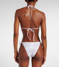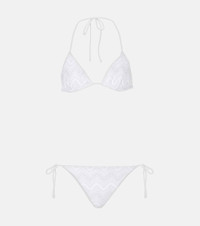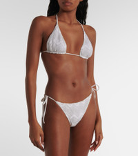Product Details - Material: 91% viscose, 9% metallic fibres - Care instructions: hand wash - Made in Italy - Designer color name: White w/ Silver Lame - Lining: 80% polyamide, 20% elastane - Closure: self-ties - Item number: P01002396 Size & Fit - True to size - Unpadded Top - Minimal coverage - High-cut leg - The model seen in the picture is 178cm-5'10", cup size B, and wearing a size IT 40