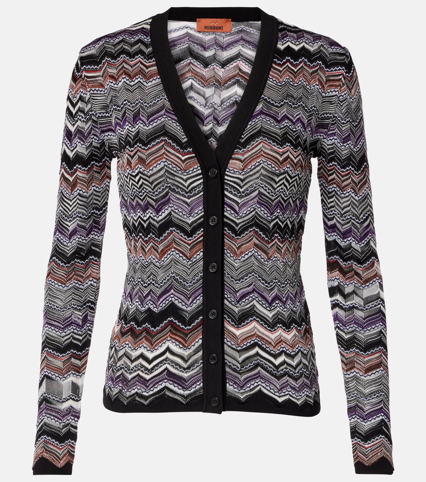 Missoni's iconic Zig Zag pattern was first introduced in the 1950s and is now a symbol of Italian luxury. The piece showcases the brand's colorwork mastery with its complementary dark hues. Product Details - Material: 74% viscose, 23% cotton, 2% polyamide, 1% elastane - Care instructions: dry clean - Made in Moldova - Designer color name: dark tones - Item color: black, multicolor - Closure: buttoned front - Item number: P01045574 Size & Fit - True to size - Cinched waist - Stretchy fabric - Falls to the hip - The model seen in the picture is 178cm-5'10" and wearing a size IT 38