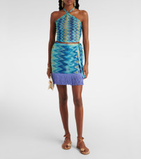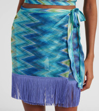 Missoni's iconic Zig Zag pattern was first introduced in the 1950s and is now a symbol of Italian luxury. The motif appears all over this self-tie fringed wrap skirt. Product Details - Material: 100% polyester - Care instructions: dry clean - Made in Italy - Designer color name: Blue and green macro chevron - Item color: multicolor - Item number: P01045537 Size & Fit - True to size - Adjustable at the waist - Stretchy fabric - Non-stretchy fabric - High-waisted - The model seen in the picture is 178cm-5'10" and wearing a size IT 38 - Length of fringe 11,0cm-4.5"