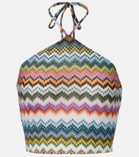 Missoni translates its iconic Zig Zag pattern onto swim and resortwear, making Missoni Mare the ultimate choice for poolside glamour. This lame crop top is designed with a self-tie halterneck and finished with the signature motif. Product Details - Material: 83% viscose, 17% metallic fibres - Care instructions: dry clean - Made in Italy - Designer color name: Multicolor w/Dark Base - Item color: multicolor - Closure: self-ties - Item number: P01107474 Size & Fit - True to size - Low back - Fitted - Elasticated hem - Stretchy fabric - Cropped - The model seen in the picture is 178cm-5'10" and wearing a size IT 38